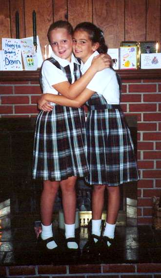 Shea and Devin on the fireplace